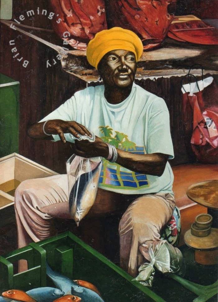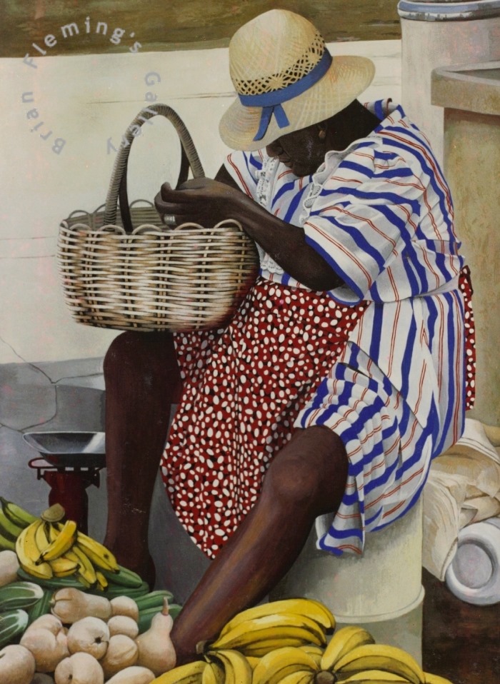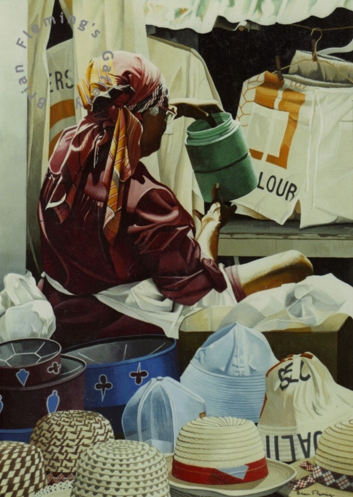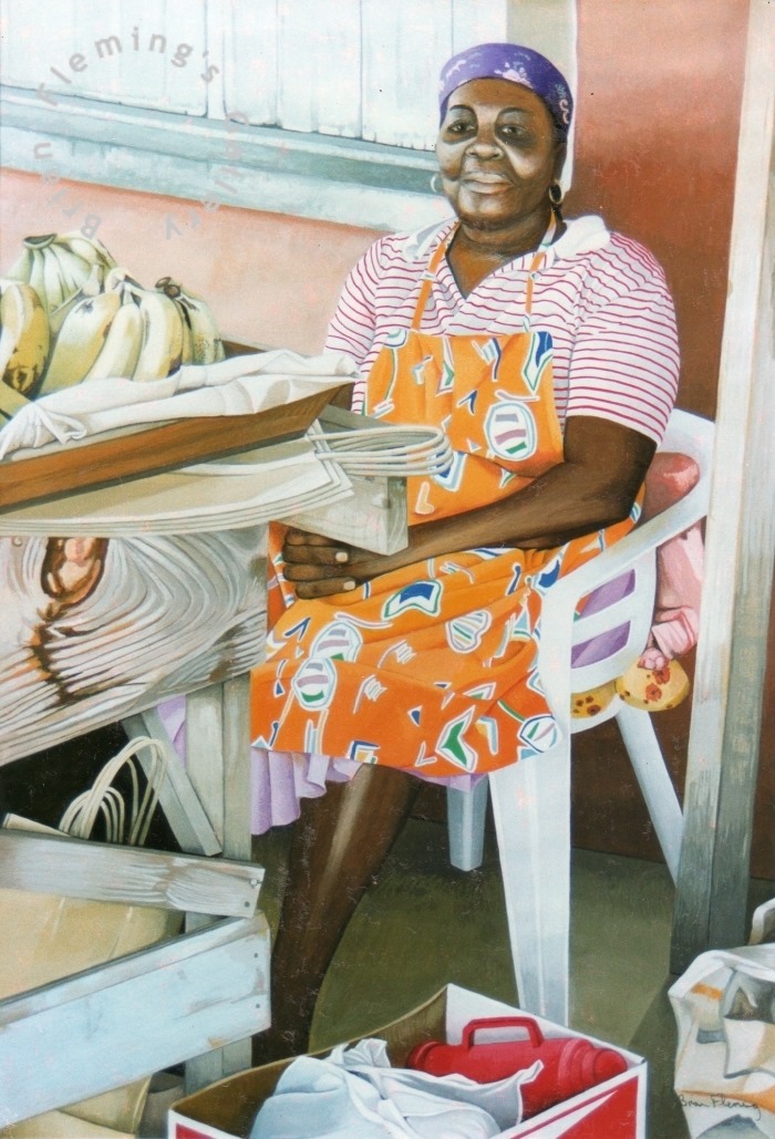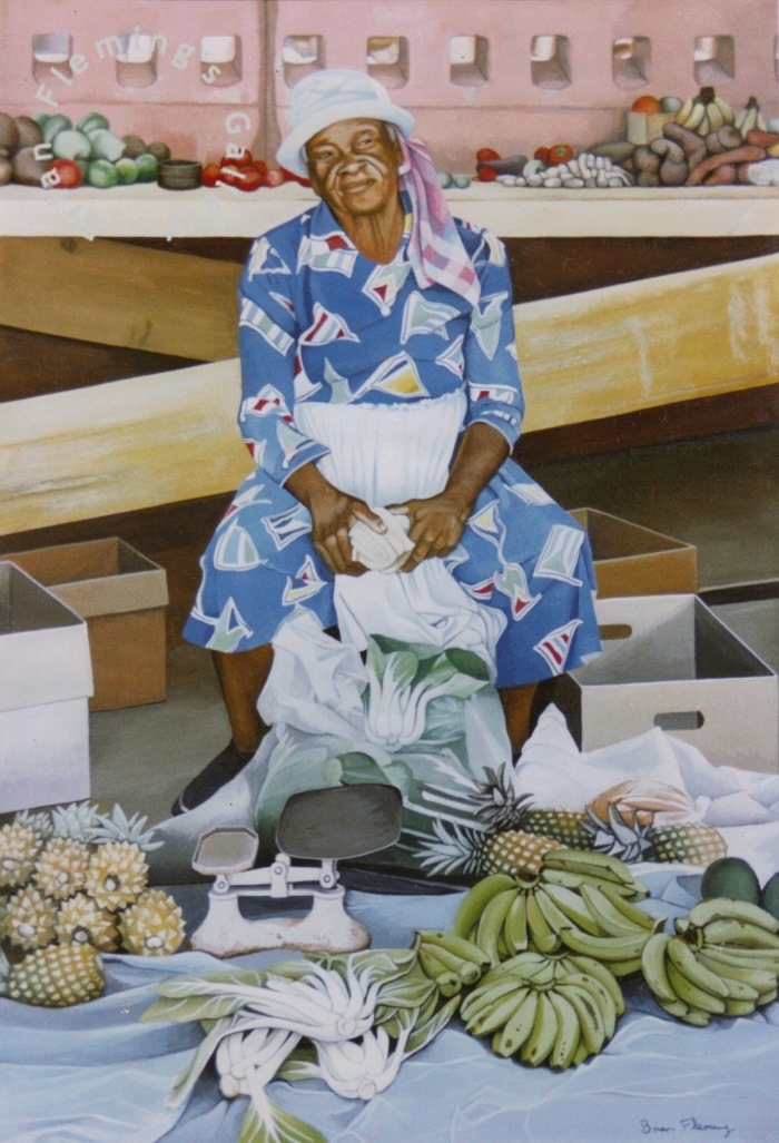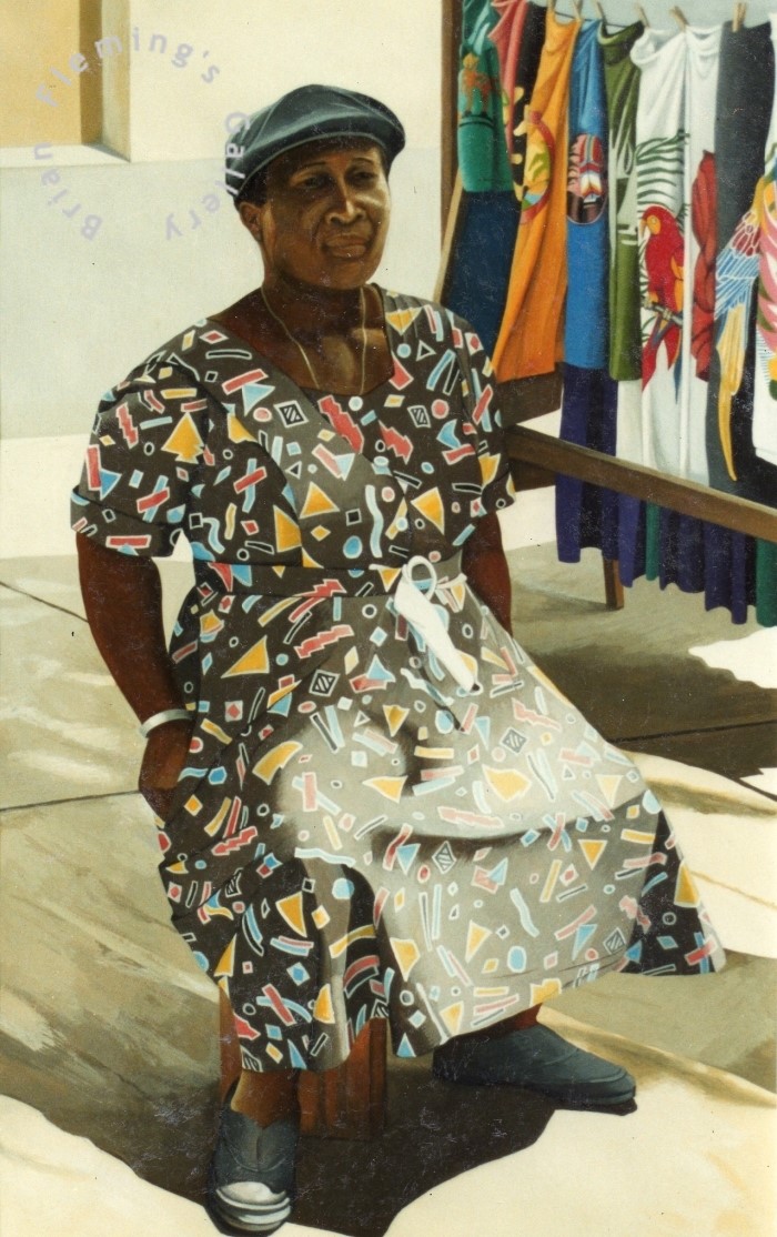 The paintings of Banana Seller, Fish Seller, Fruit Seller, Market Trader, Two Women, Woman in Striped Dress, Woman in Blue, Clarence House and Shirley Heights are now in private collections.