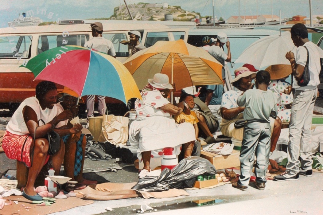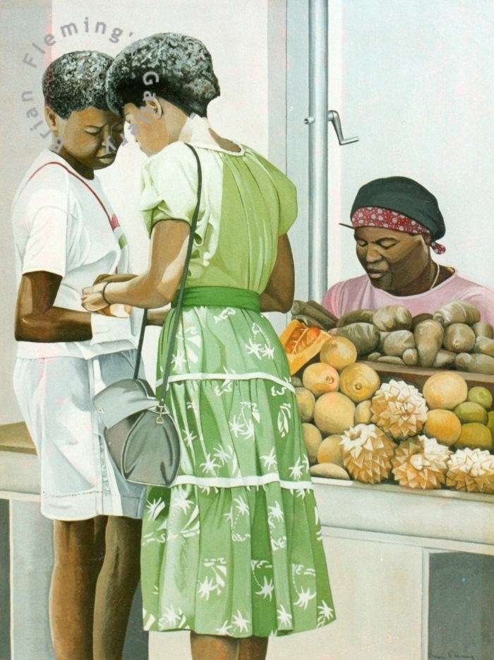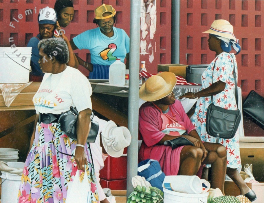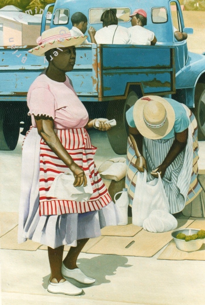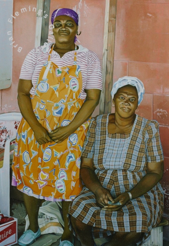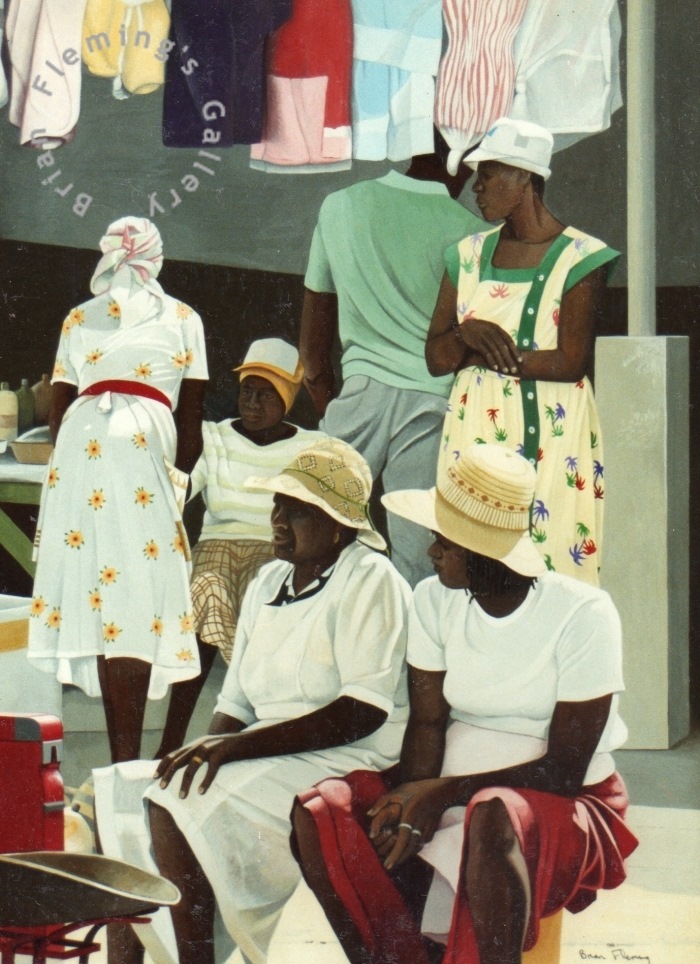 The paintings of Banana Seller, Fish Seller, Fruit Seller, Market Trader, Two Women, Woman in Striped Dress, Woman in Blue, Clarence House and Shirley Heights are now in private collections.