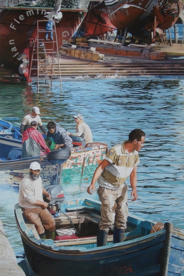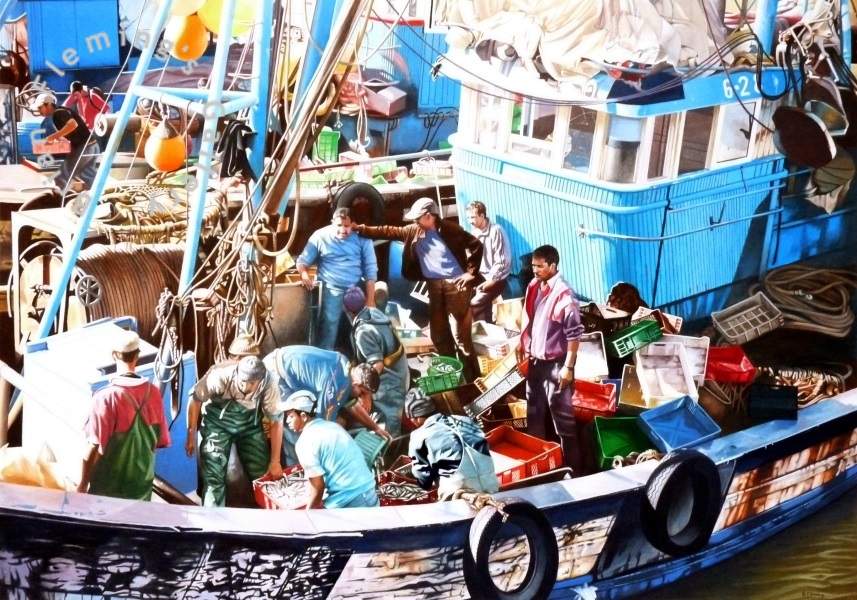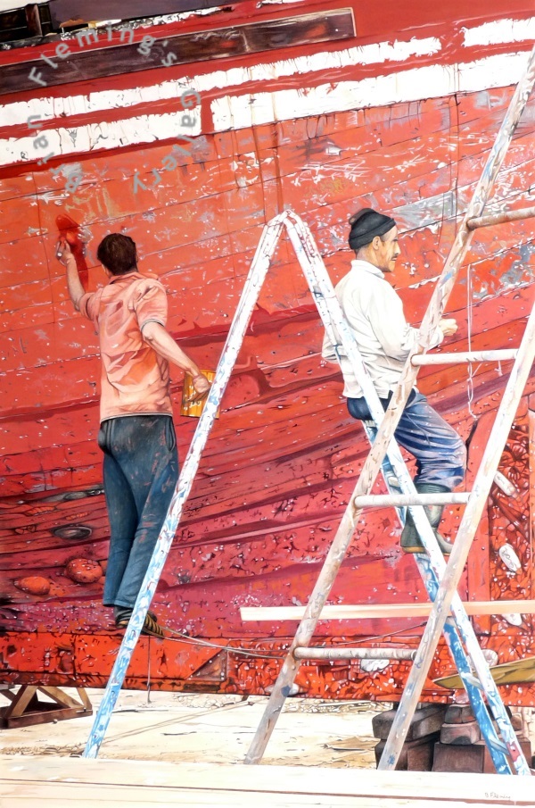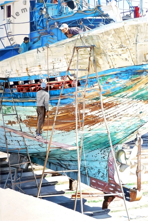 The paintings of Fishing Boats, Fishing Port, Repairs to Blue Boat and Quayside are now private collections.